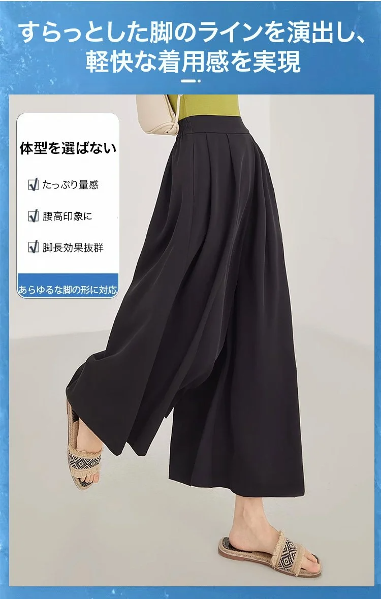 接触冷感ハイウエストガウチョパンツ