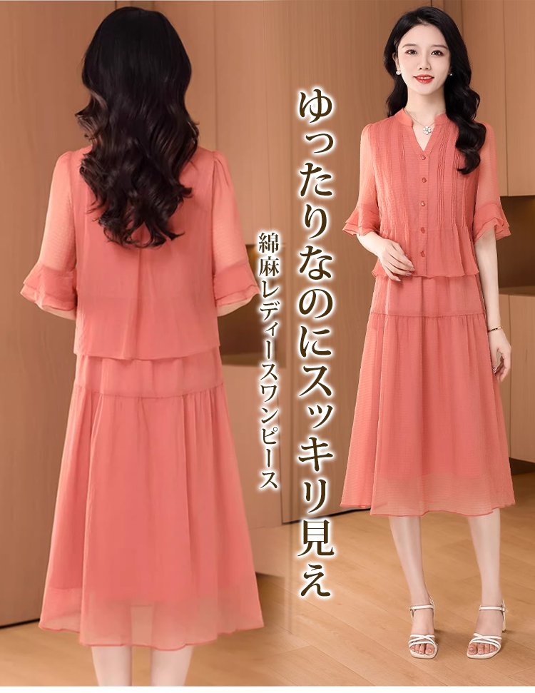 コットンリネンのレイヤードワンピース
